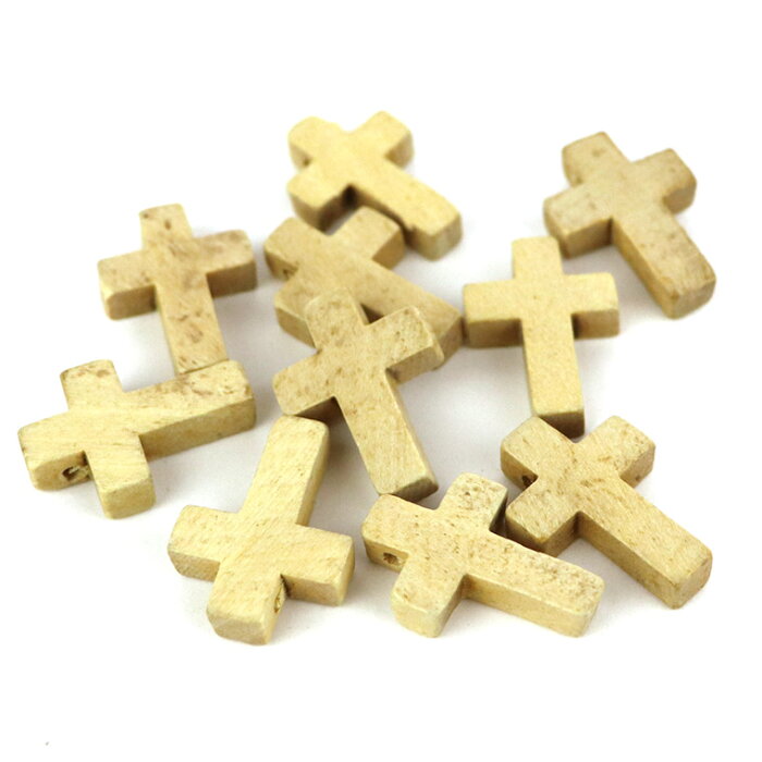 【B品】23mm×16mm 10個入 ウッドビーズ クロス ナチュラル / 木製 檜 桧 ひのき オーナメント 木目 天然 十字架 インテリア スペーサー ネックレス ペンダント ブレスレット 工作材料 ハンドメイド資材 軽い【ゆうパケット対応】